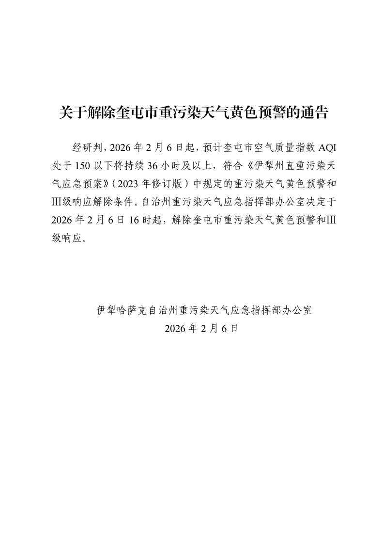 发布日期:2026-02-06 来源:伊犁哈萨克自治州重污染天气应急指挥部办公室