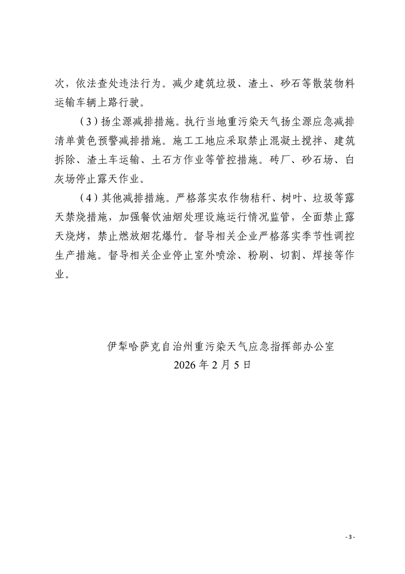 发布日期:2026-02-05 来源:伊犁哈萨克自治州重污染天气应急指挥部办公室