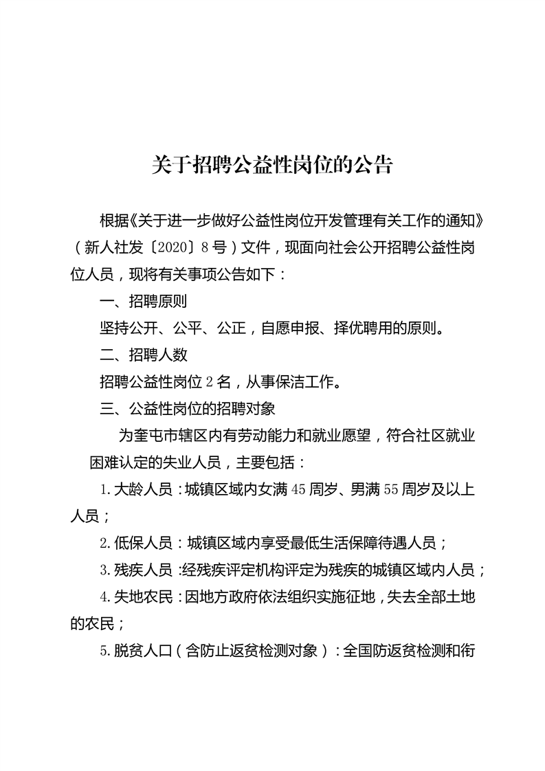 关于招聘公益性岗位的公告