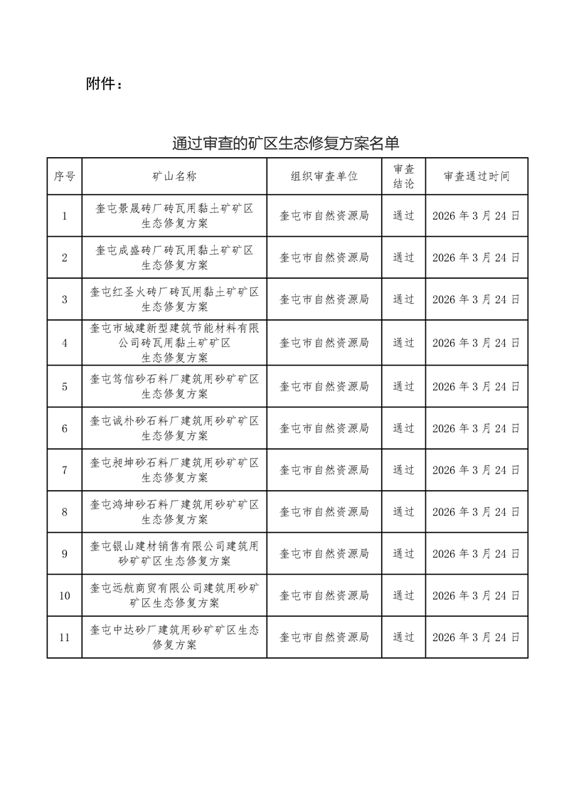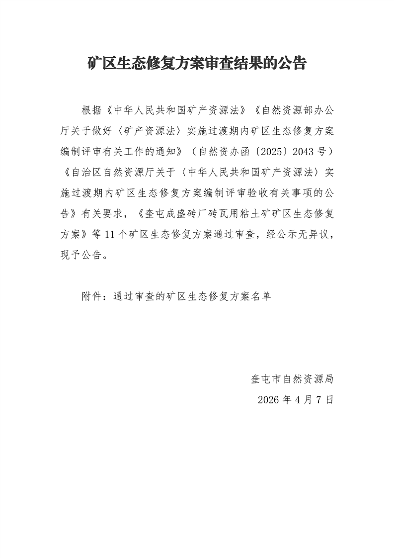 矿区生态修复方案审查结果的公告