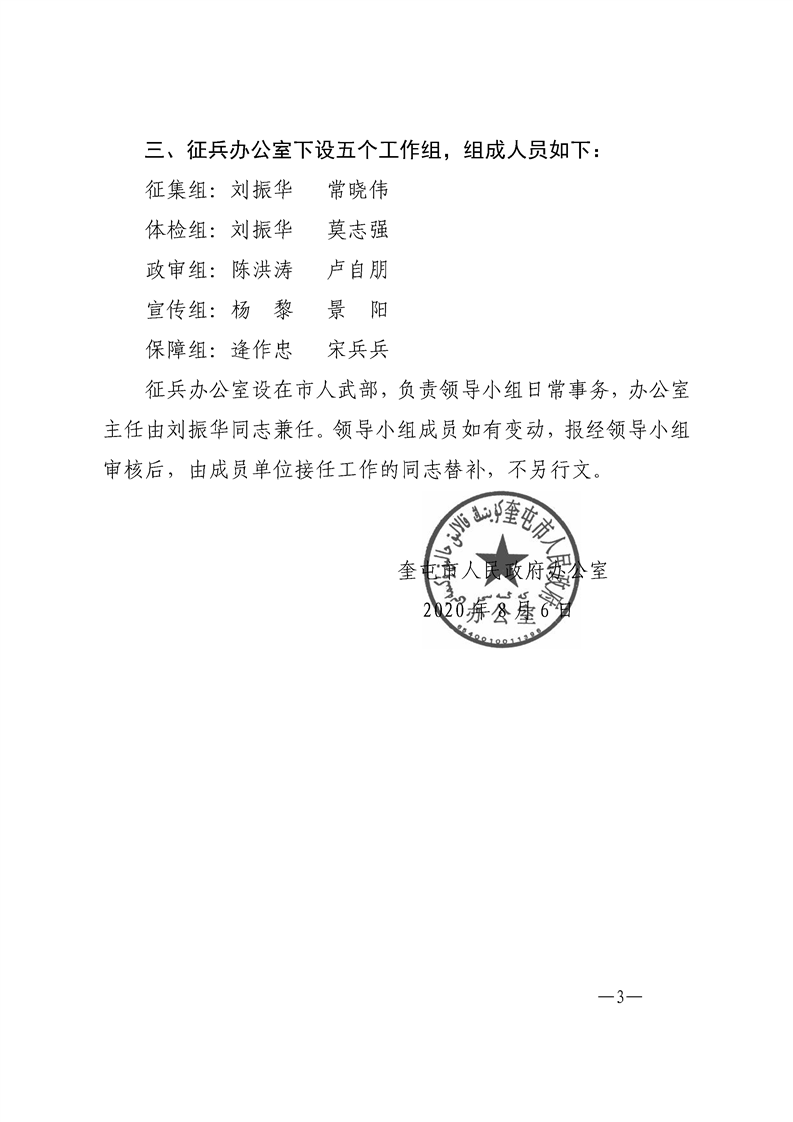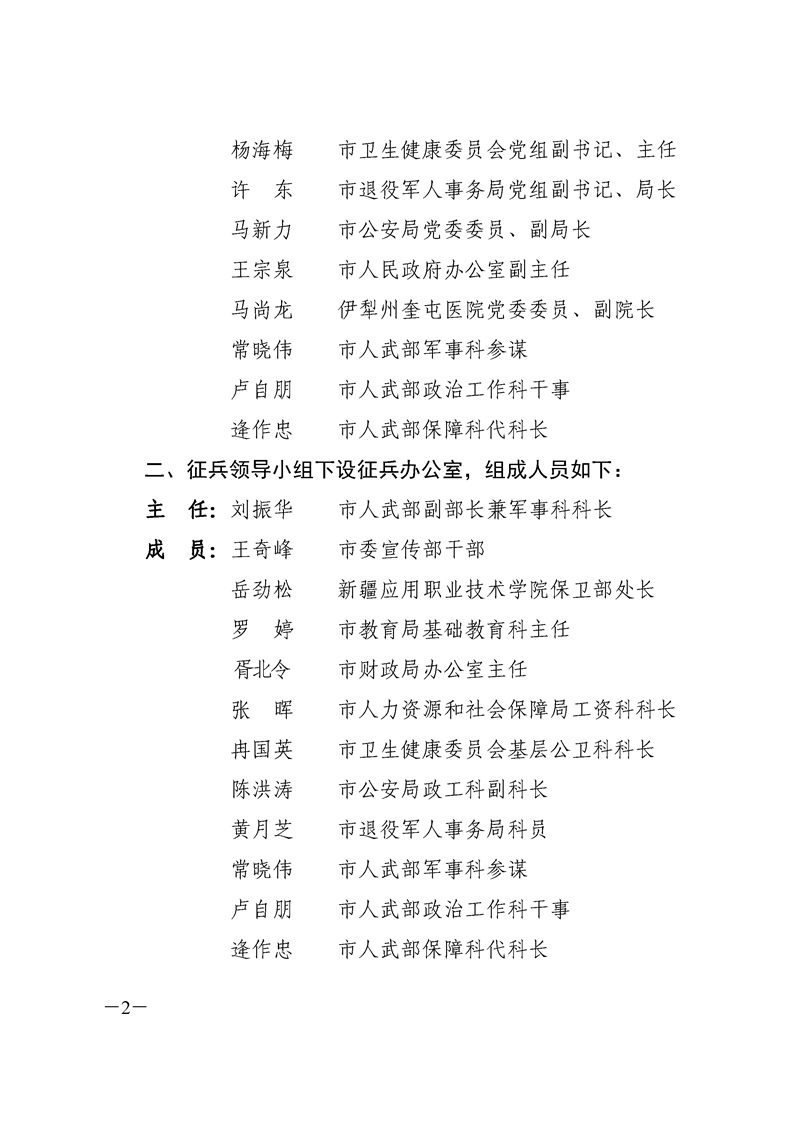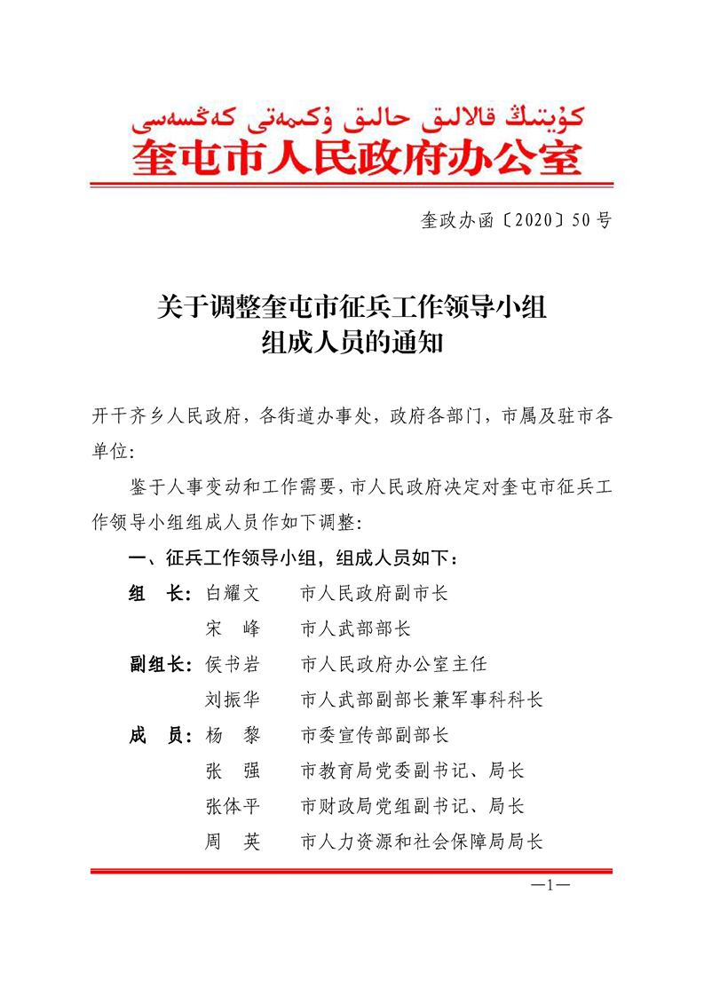 关于调整奎屯市征兵工作领导小组组成人员的通知