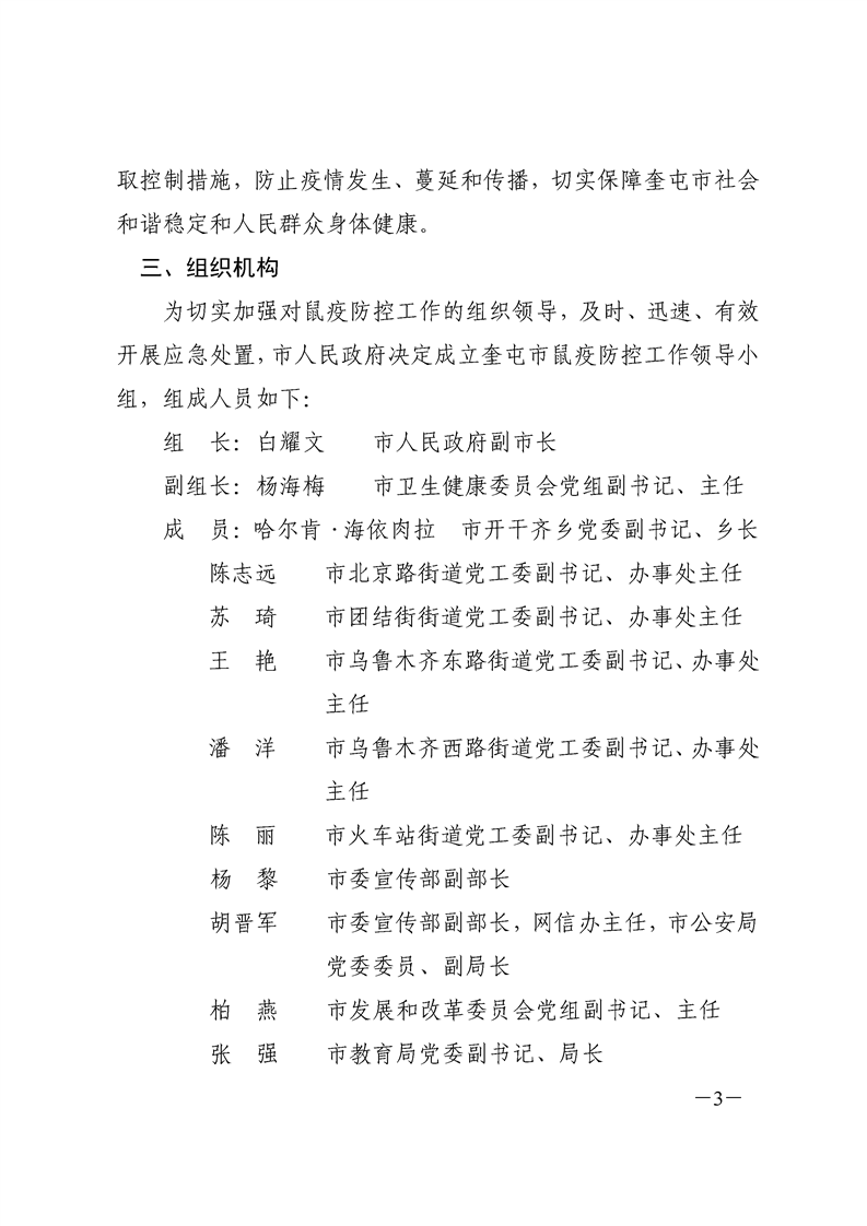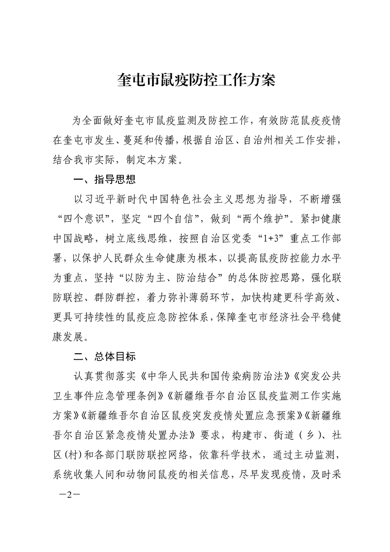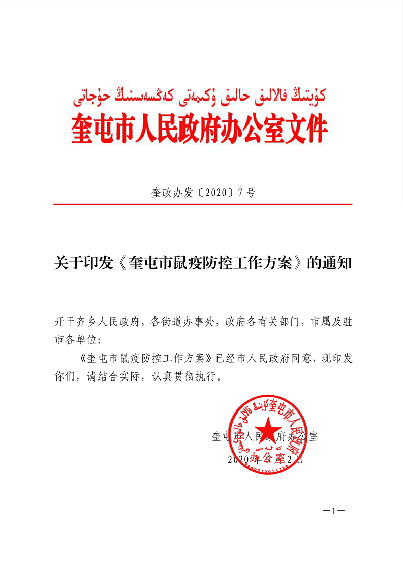 关于印发《奎屯市鼠疫防控工作方案》的通知(奎政办发〔2020〕7号)