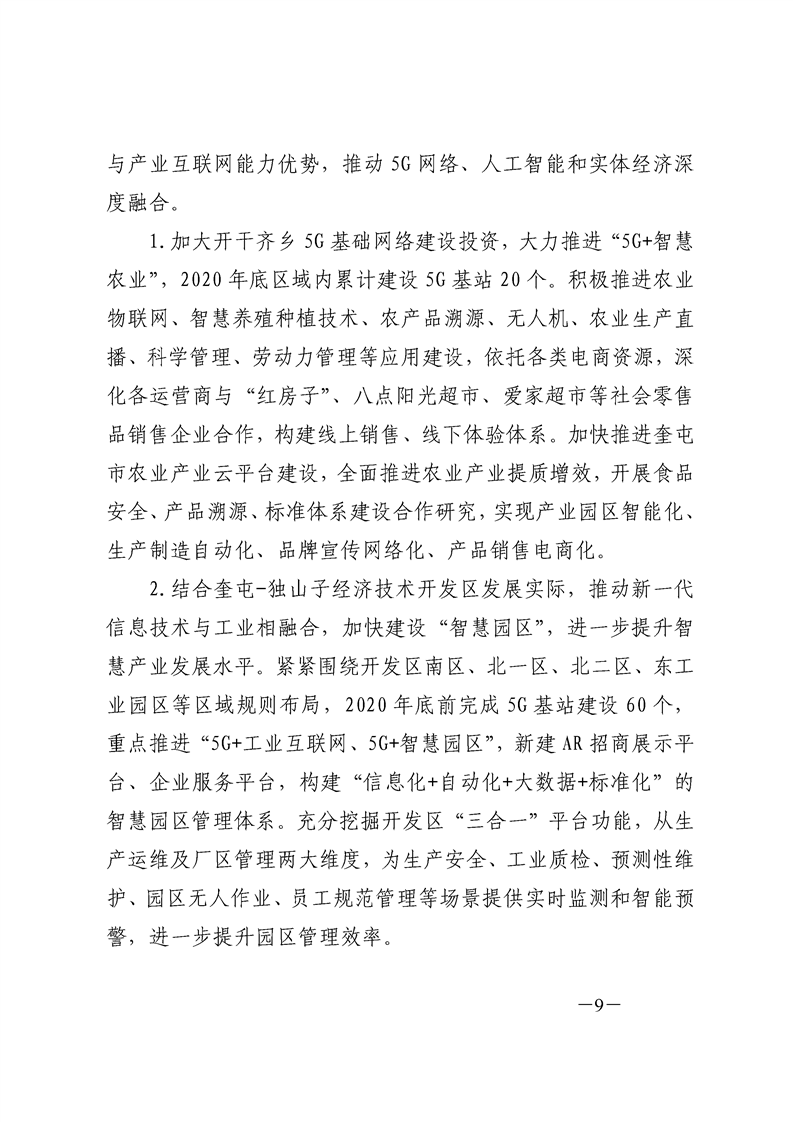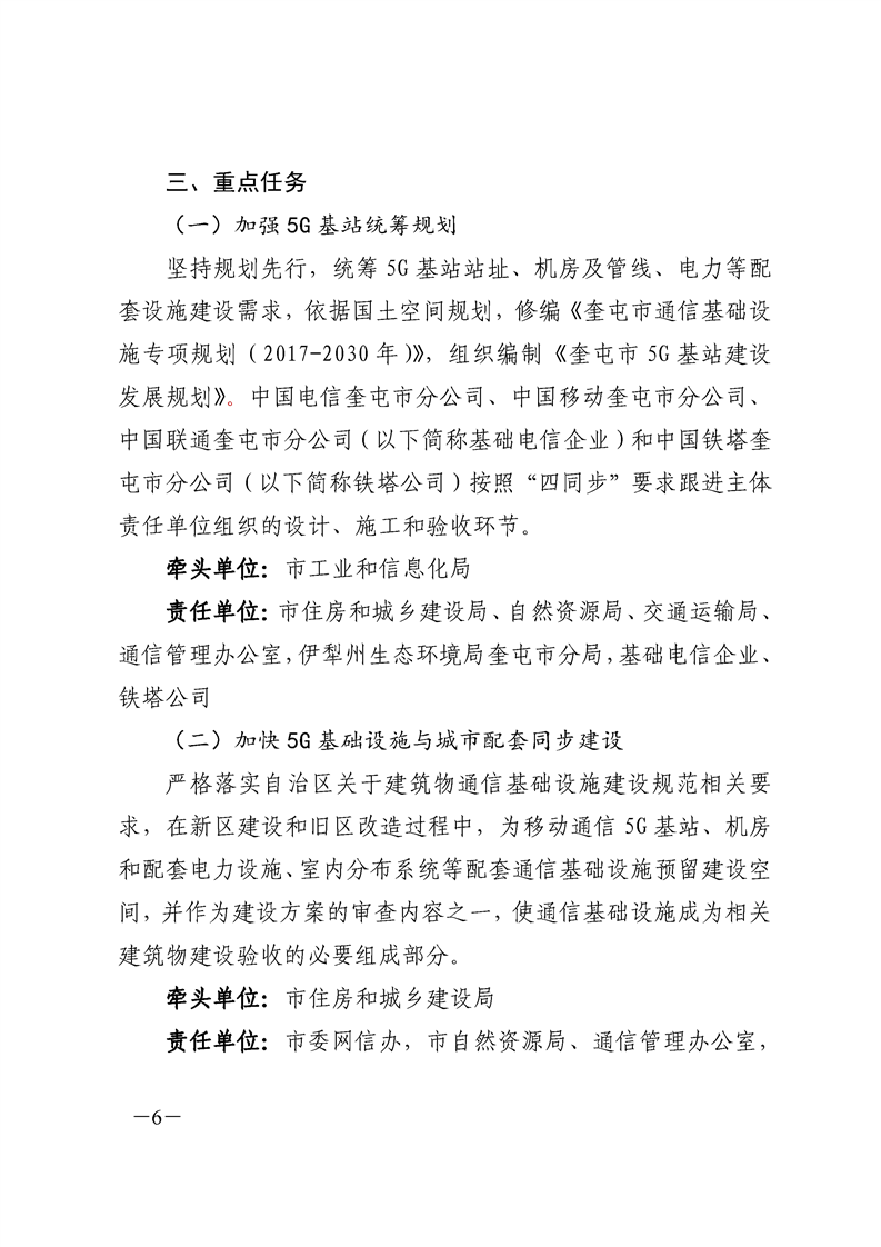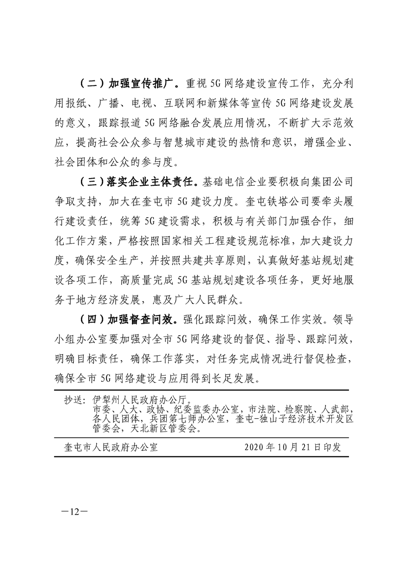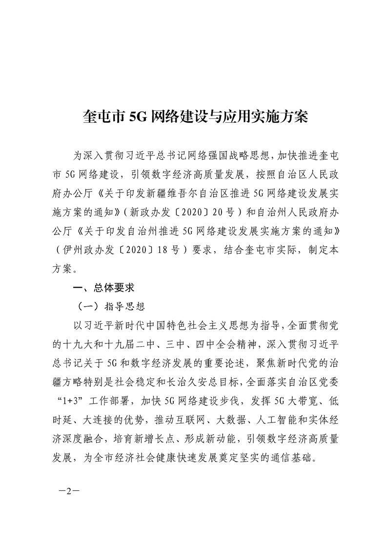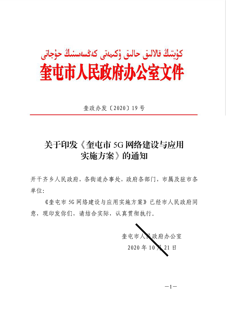 关于印发《奎屯市 5G 网络建设与应用实施方案》的通知(奎政办发〔2020〕19 号)