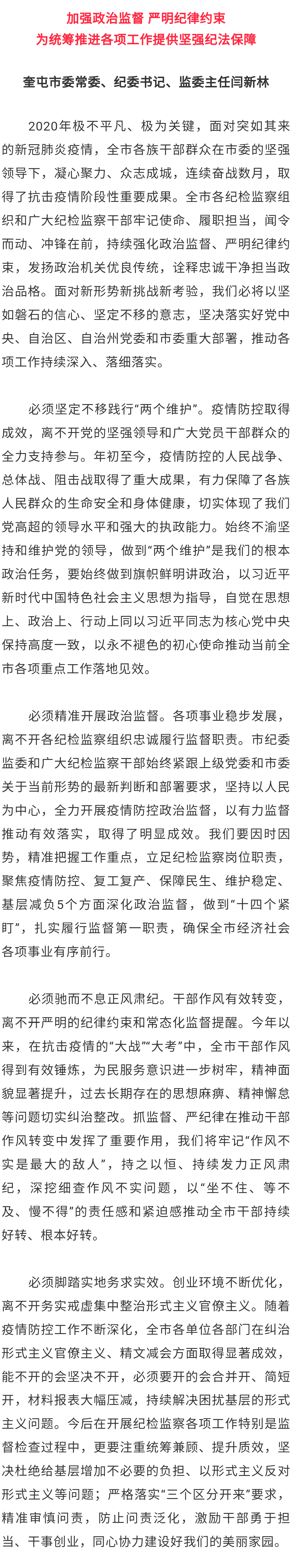 闫新林:加强政治监督 严明纪律约束 为统筹推进各项工作提供坚强纪法保障