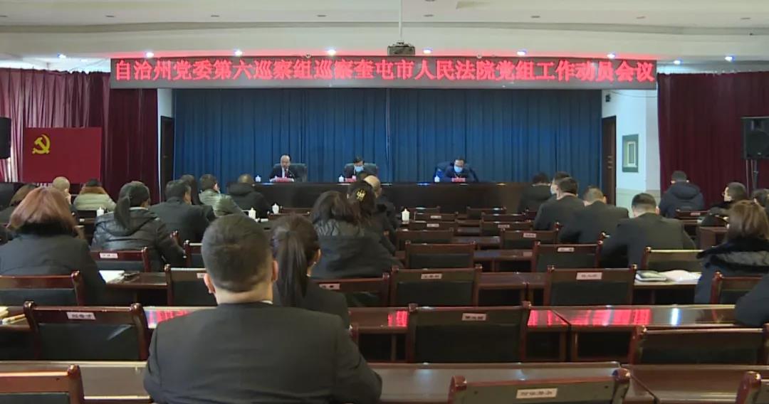 伊犁州党委第六巡察组组长、副处级巡查员孙峰和全体组员、奎屯市人民法院党组班子成员、纪检监察机构和组织(人事)部门及全体干警参加巡察动员会。