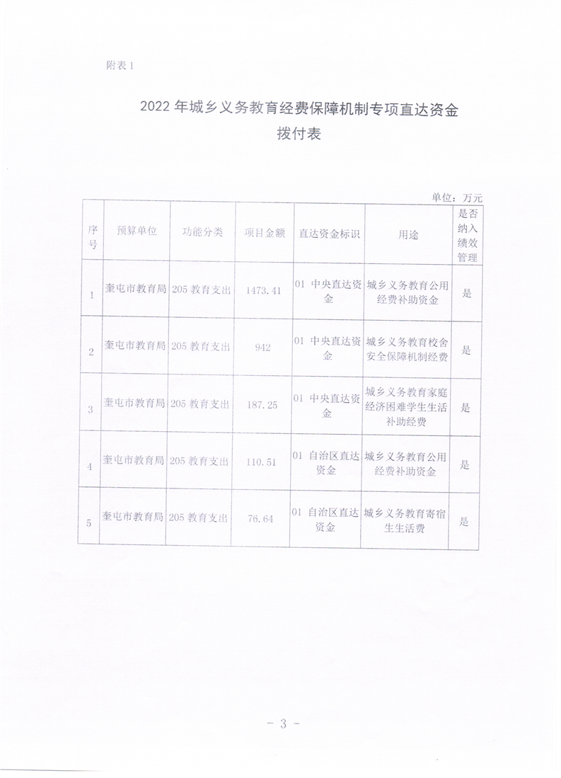 关于拨付2022年城乡义务教育补助专项资金的通知 奎财教【2022】1号