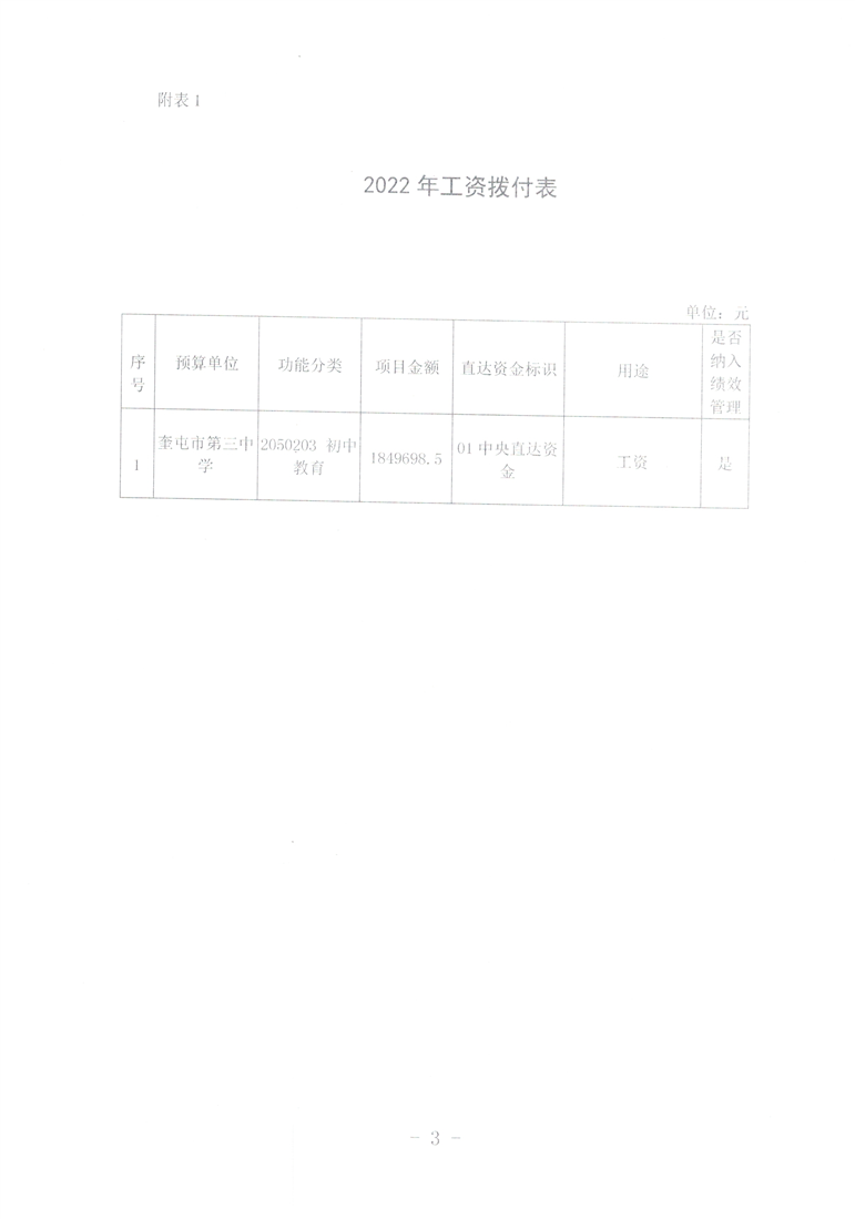 关于拨付奎屯市第三中学工资的通知