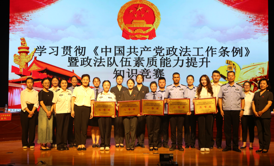 活动现场气氛紧张激烈,5支参赛队伍的15名选手踊跃答题,各队比分你追我赶,充分体现了对《中国共产党政法工作条例》的学习掌握、融会贯通和学以致用。经过激烈角逐,市人民检察院代表队获得竞赛一等奖,市人民法院、市公安局代表队获得竞赛二等奖,市委政法委代表队、市司法局代表队获得竞赛三等奖。