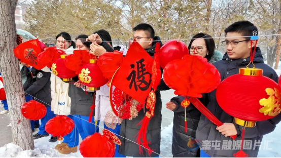 校园主干道、教学楼周边,一盏盏火红的灯笼错落悬挂、随风摇曳,成为一道靓丽的风景线。满载美好期许的祝福盒摆放各处,春联、福字整齐张贴在楼宇门楣,校园里处处洋溢着温馨喜庆的节日氛围。这些布置不仅扮靓了冬日校园,更让师生们感受到中华传统文化的魅力,也寄托着学校对全体师生美好的新春祝愿。